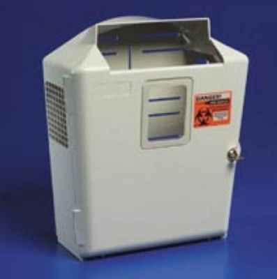 Bemis sharps wall cabinet only use with 5 quart sharps medical waste disposal container glove box holder.